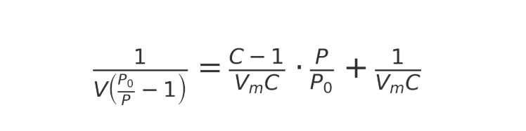 Po získání série adsorpčních dat prostřednictvím experimentů lze vynést lineární graf BET (obvykle se volí (P/Po) v rozsahu 0,05-0,35) a ze sklonu a průsečíku lze vypočítat Vm a C, čímž se nakonec získá specifický povrch.